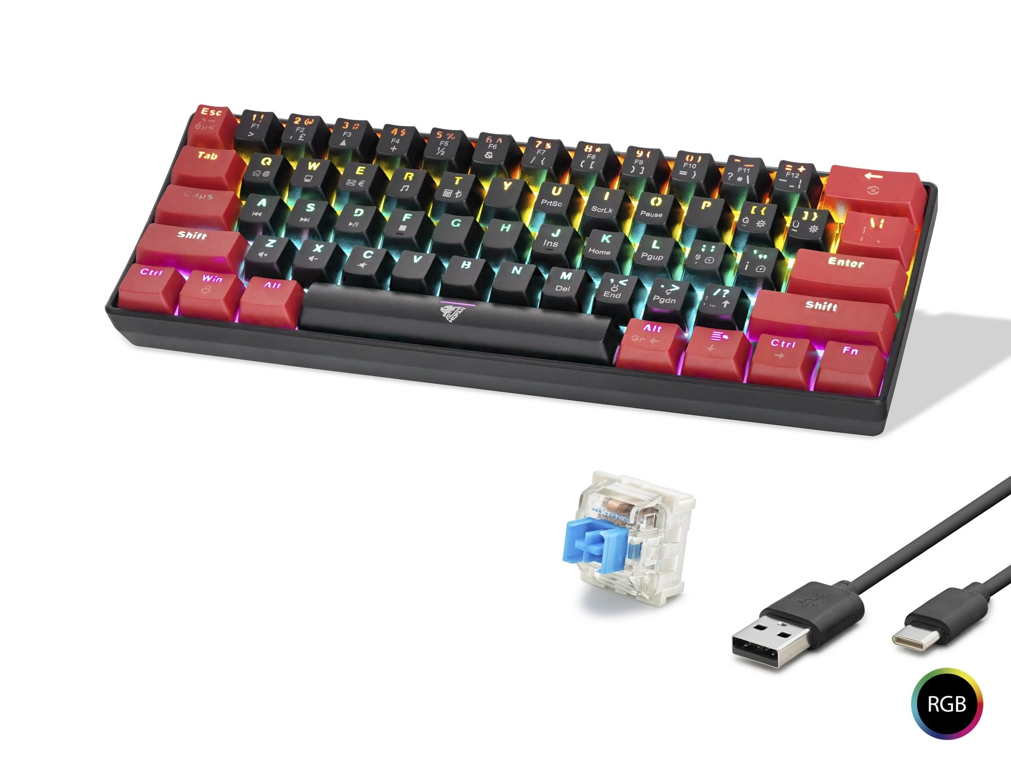 MEKANİK RAINBOW KLAVYE BLUE SWITCH - SİYAH KIRMIZI (61 TUŞ)