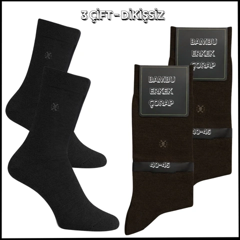 Uyguna-Yakala 3 Çift - Dikişsiz - Bambu Erkek Soket Çorap -RAP.256