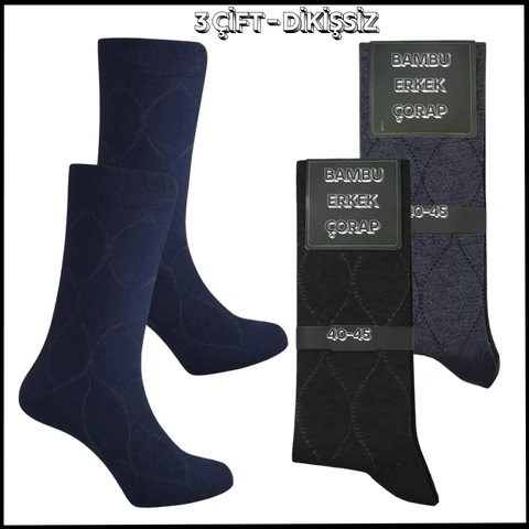 Uyguna-Yakala 3 Çift - Dikişsiz - Bambu Erkek Soket Çorap -RAP.303