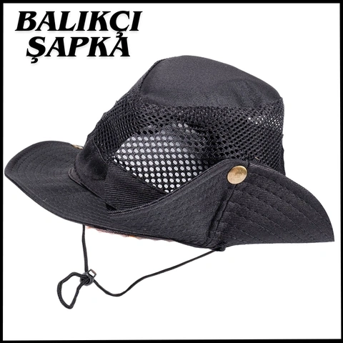 Uyguna-Yakala Balıkçı Siyah Fileli Şapka-KA.043